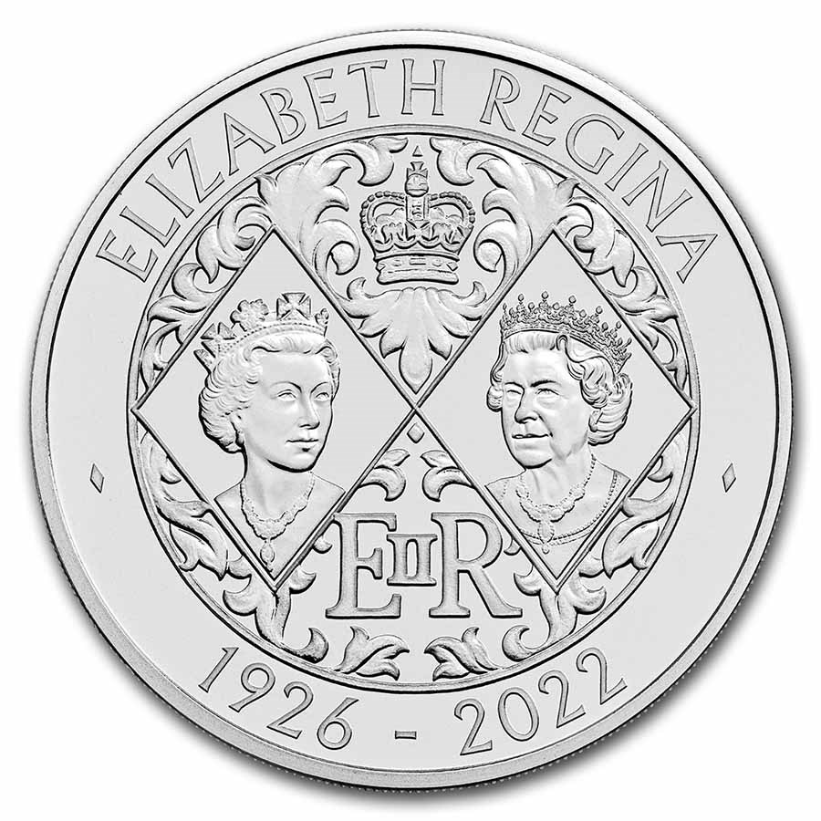 - Reverse: Showcases portraits of Her Majesty at the beginning of her reign looking forward and a portrait of Her Majesty later in her reign, looking back. The dates of 1926-2022 curve along the coin’s rim to signify her year of birth and death.